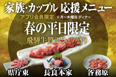 [アプリ会員] 平日だけのお得な飛騨牛贅沢シェア盛り(岐阜3店)