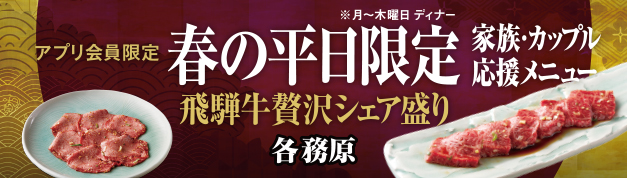 [アプリ会員] 平日だけのお得な飛騨牛贅沢シェア盛り(岐阜3店)